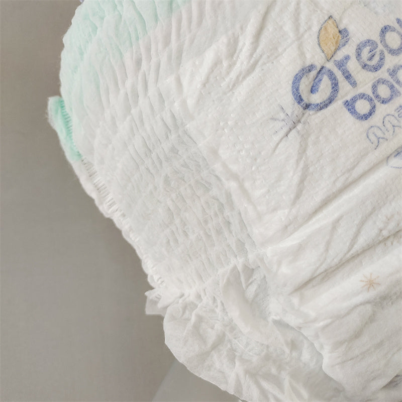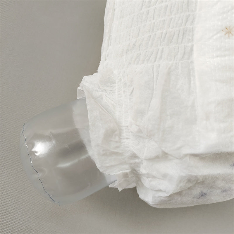 double layer hot-air non-woven fabric surface,import SAP from Japan and Germany,bubble waistband,breathable bottom film,high absorption, soft and comfortable